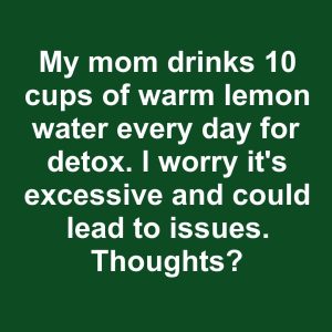 My mom drinks 10 cups of warm lemon water every day for detox. I worry it’s excessive and could lead to issues. Thoughts?