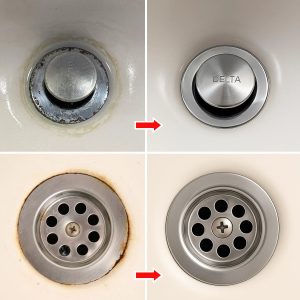 How to remove the dark circle around faucets