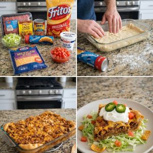 Frito Taco Pie 🌮🥧🧀 Well, hello there, sugar! You’re right here in your grandma’s kitchen, and today we’re bakin’ up a hearty Frito Taco Pie. It’s cheesy,…