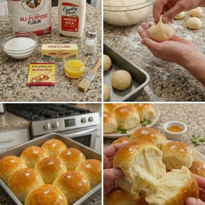 Buttery Parker House Rolls 🧈🍞✨ Well, hello there, sugar! You’re right here in your grandma’s kitchen, and today we’re bakin’ up a batch of Buttery Parker House…